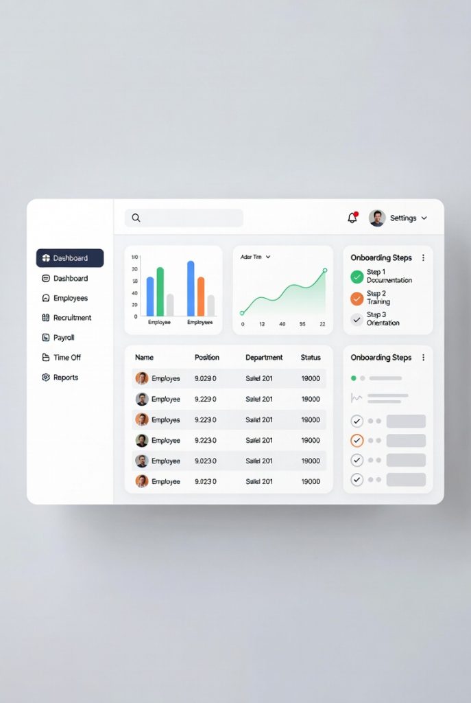 - Navigation sidebars: Quick access to modules such as employee records, reports, or time tracking.