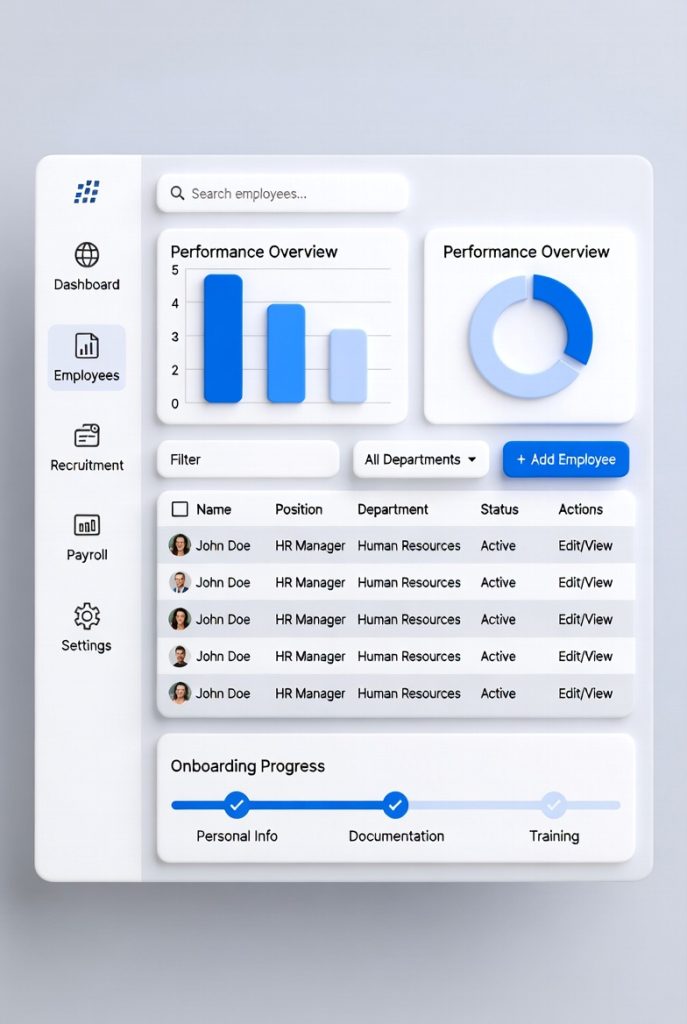 Dashboards are central to digital HR platforms. Educationally, they provide insight into information organization and accessibility. Core elements often include: